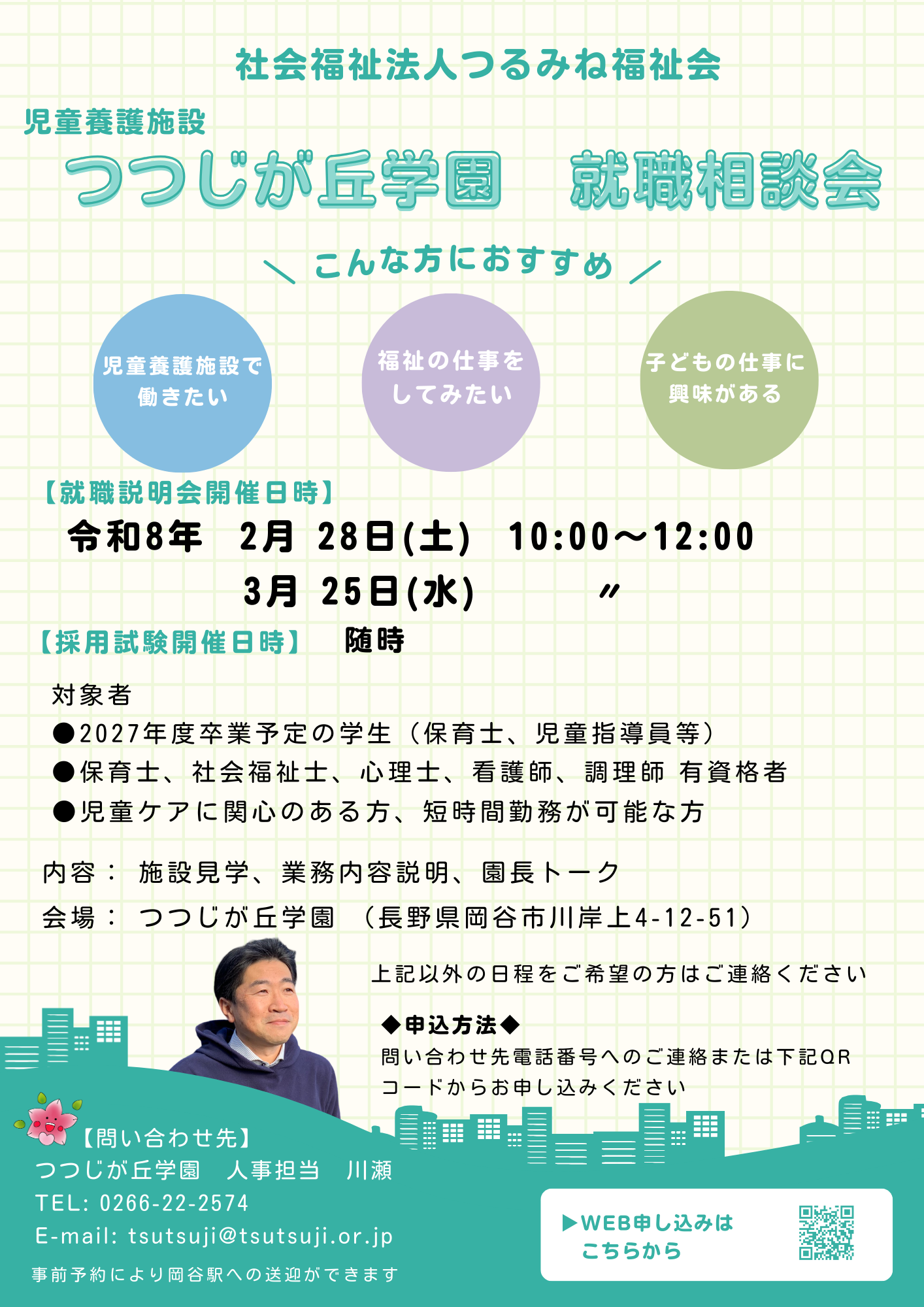 春休みに子どもたちと遊びながら関わりたい…職員の働く様子を見てみたい…これから新しい施設づくりを知りたい…など、興味のある方は「HP採用情報⇒問い合わせフォーム」又は「TEL026-622-2574」まで