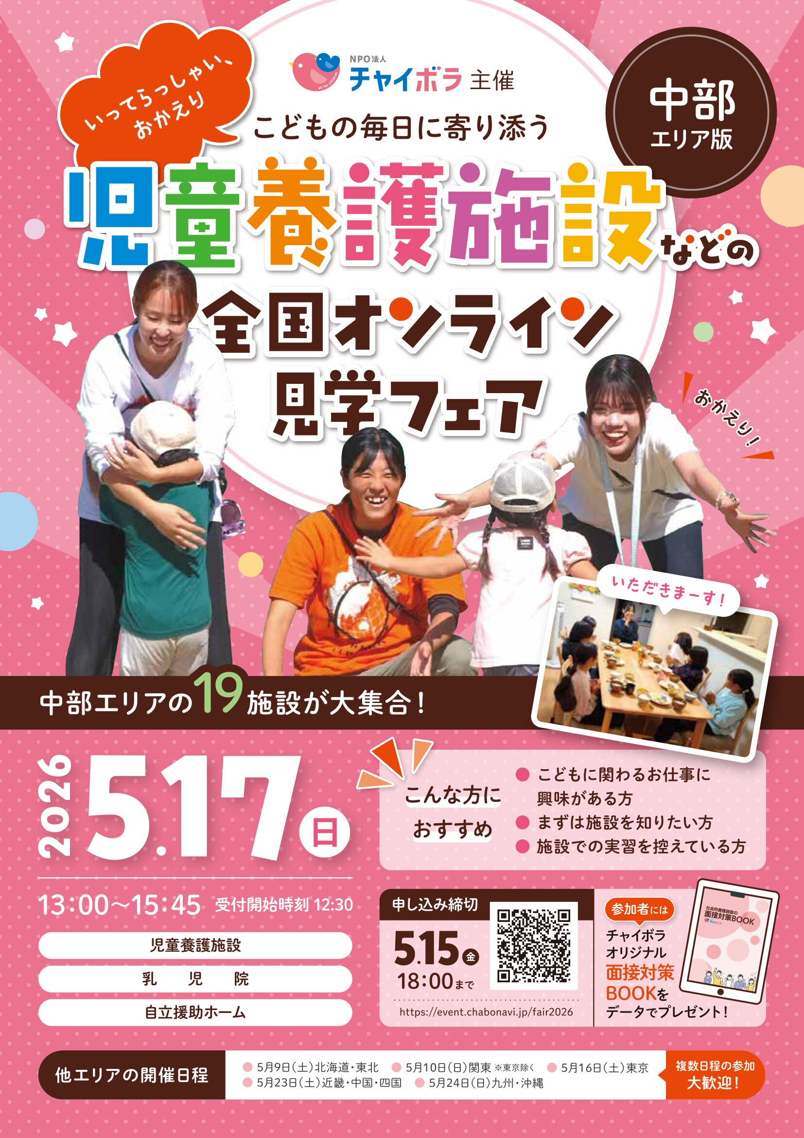 5月17日 チャボナビ就職オンライン相談会にブース出展します。(事業拡充のため2029年3月卒学生(指導員・保育士・心理師・栄養士・看護師・相談員)を募集します。