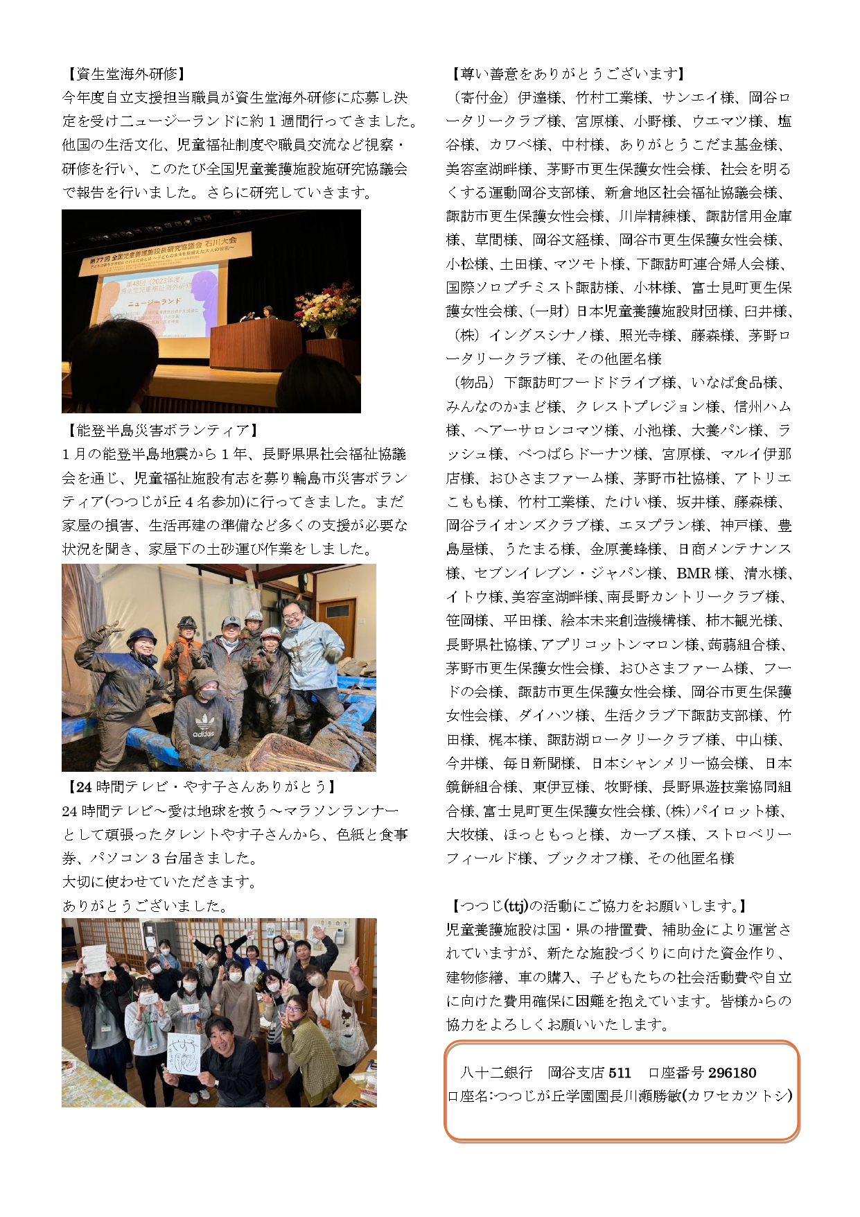 大変遅くなりましたが2024年度版「学園便り」掲載いたします。