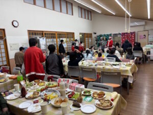 つつじが丘学園にて12月パーティーを開きました。 スペシャルゲスト多数で賑やかで明るく美味しい会になりました。