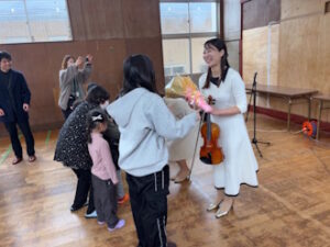2026年1月27日 / 最終更新日時 : 2026年1月27日 matsuoharunobu つつじが丘学園 【音楽】信州アーティスト 2026年(令和8年)1月 3年目、信州アーティスト活動促進事業(next事業)を活用して演奏家2名(学生)が来園し、素敵な音楽を披露してくださいました。(長野県文化振興事業団より) こどもたちには幼い時から本物に触れる機会を作ってあげたいと考えていて、毎回とてもよい機会となっています。 演奏後、楽器に触れる体験・交流の時間も楽しかったです。暮らしの中に♪♪♪があるといいですね…ありがとうございました。 Follow me! FacebooktwitterHatenaPocketCopy